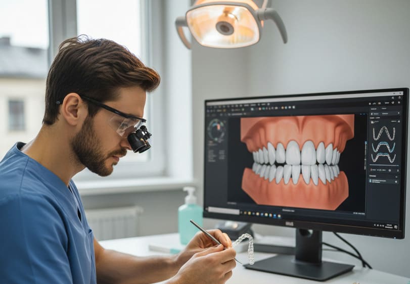 - Modelli digitali e software di simulazione. Tramite scanner intraorale viene creata una rappresentazione 3D dell’arcata, utile per calcolare con precisione millimetrica lo spazio disponibile e lo spostamento richiesto;